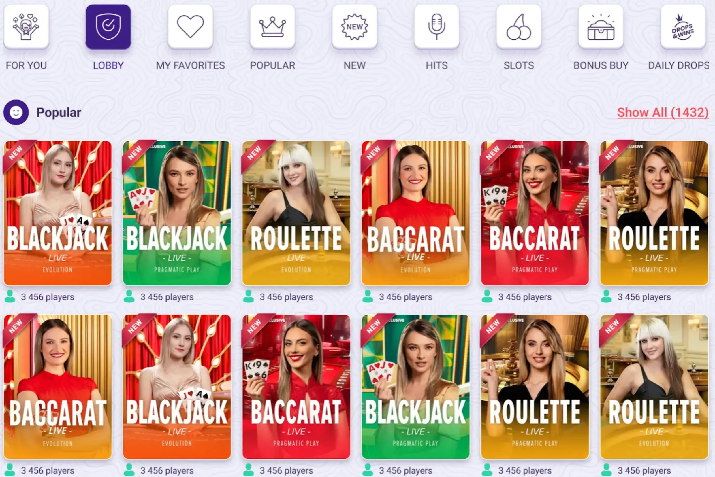 Pe lângă sloturi, avem și o secțiune completă de jocuri de masă și live casino, dedicată celor care vor strategie, interacțiune și ritm real.